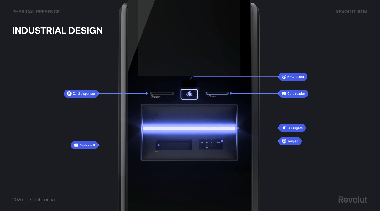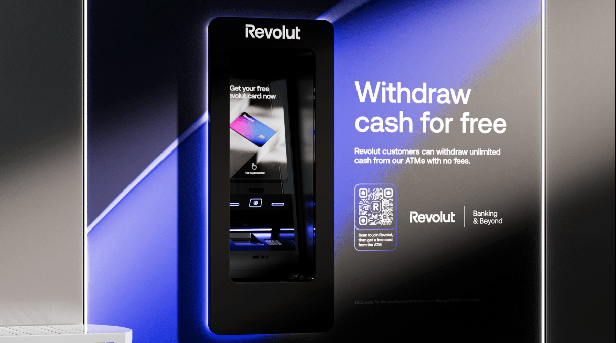The product launched in Spain with plans to expand across Europe. Users can withdraw and deposit cash for free, get a Revolut card from the machine, and use contactless support, in a sleek, branded experience.